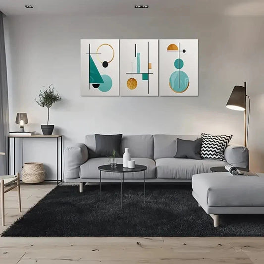 3pcs Teal Golden & Black Design Geometric Metal Print Ready to Hang Art