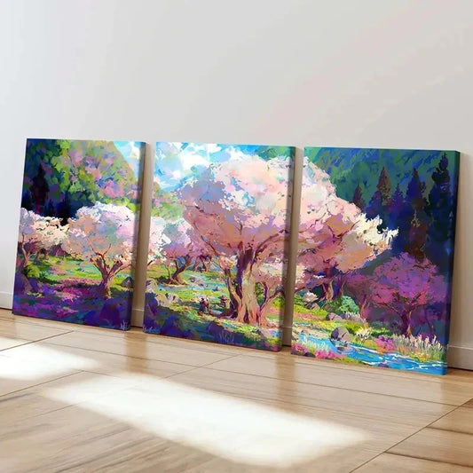 3pcs Watercolor Sakura Tree Anime Style Wall Art Set Canvas Framed 40x60cm - High Quality Print 100% Australian Made Wall Canvas Ready to Hang