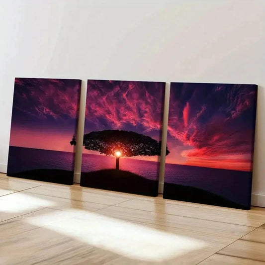 3pcs Red Sunset Trees In The Sea Wall Art Set Canvas Framed 40x60cm - High Quality Print 100% Australian Made Wall Canvas Ready to Hang