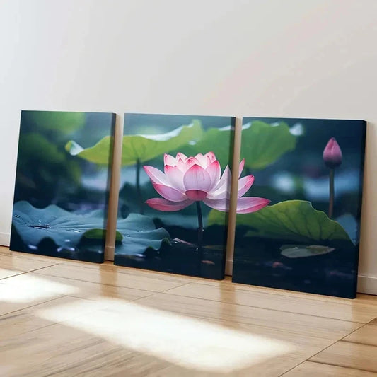 3pcs Serene for Lotus Flower & Water Lilies Wall Art Set Canvas Framed 40x60cm - High Quality Print 100% Australian Made Wall Canvas Ready to Hang