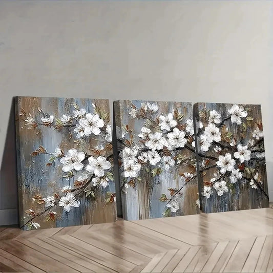 3pcs Abstract Painting Of White Flowers Wall Art Set Canvas Framed 50x70cm - High Quality Print 100% Australian Made Wall Canvas Ready to Hang