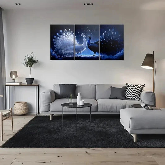 3pcs Abstract Painting Blue PeaRooster Metal Print Ready to Hang Art