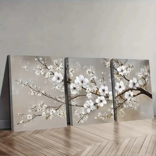3pcs White Blossoms Plum Blossom Wall Art Set Canvas Framed 60x90cm - High Quality Print 100% Australian Made Wall Canvas Ready to Hang