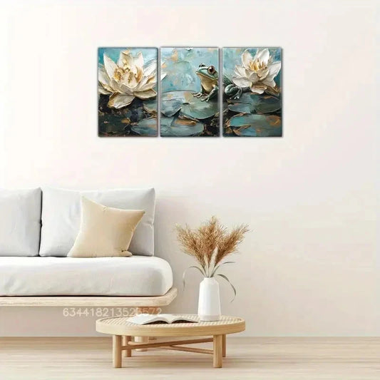 3pcs Abstract Water Lily & Frog Design Metal Print Ready to Hang Art