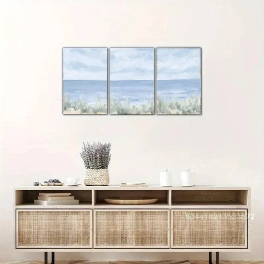 3pcs Beach Art with Light Blue & Green Waves Metal Print Ready to Hang Art