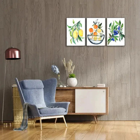 3pcs Lemon Orange Blueberry Fruit Art Metal Print Ready to Hang Art