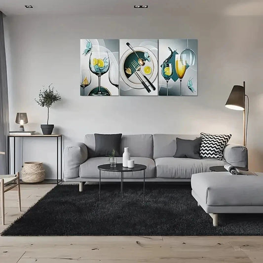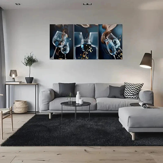 3pcs Modern Abstract Wine Glass Metal Print Ready to Hang Art