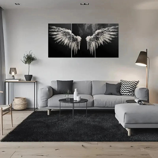 3pcs Black and White Angel Wings Metal Print Ready to Hang Art