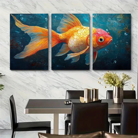 3pcs Goldfish Animals Impasto Underwater Perfect Wall Art Set Canvas Framed 40x60cm - High Quality Print 100% Australian Made Wall Canvas Ready to Hang