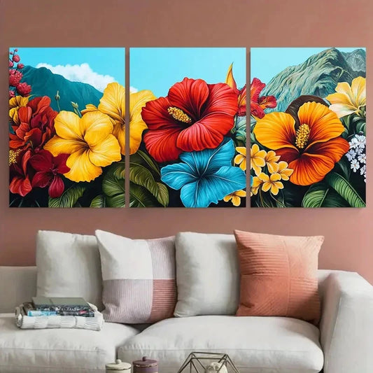 3pcs Santiago Travel Floral Illustration Wall Art Set Canvas Framed 60x90cm - High Quality Print 100% Australian Made Wall Canvas Ready to Hang