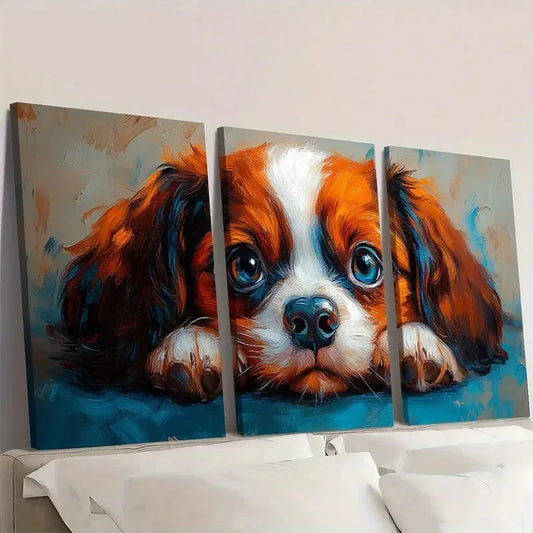 3pcs Adorable Puppy Whimsical Dog Wall Art Set Canvas Framed 40x60cm - High Quality Print 100% Australian Made Wall Canvas Ready to Hang