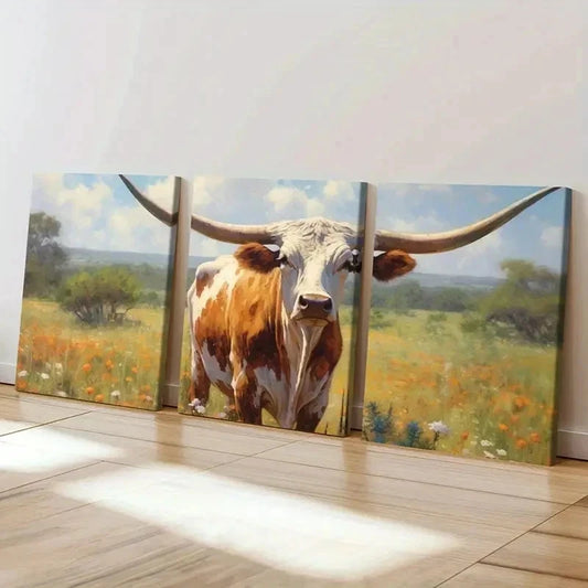 3pcs Vintage Country Animal Cow Decor Wall Art Set Canvas Framed 40x60cm - High Quality Print 100% Australian Made Wall Canvas Ready to Hang