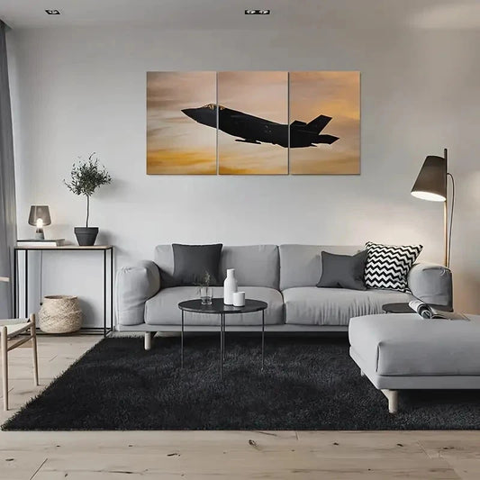 3pcs Jet Silhouette Against Sunset Sky Metal Print Ready to Hang Art