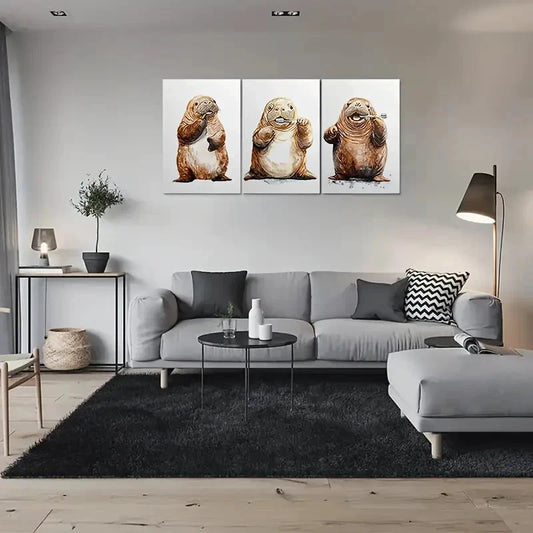 3pcs Adorable Otter Brushing Teeth Cute Animal Metal Print Ready to Hang Art