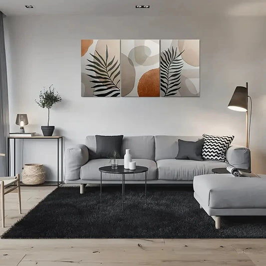 3pcs Geometric Plant Elements Neutral Tones Metal Print Ready to Hang Art