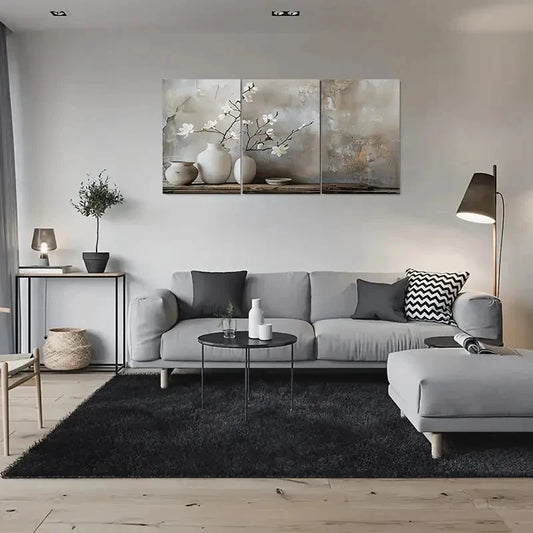 3pcs Monochrome Block Abstract Painting Wall Art Set Canvas Framed 40x60cm - High Quality Print 100% Australian Made Wall Canvas Ready to Hang
