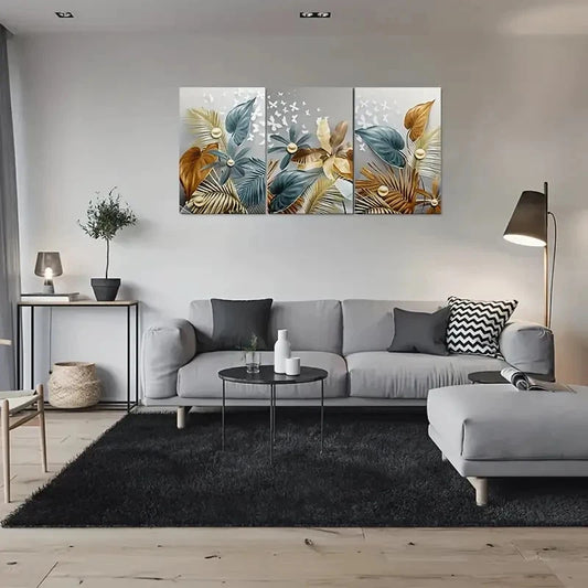 3pcs Modern Abstract Tropical Leaf & Flower Metal Print Ready to Hang Art
