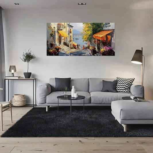 3pcs Colorful Street Scene Vibrant Metal Print Ready to Hang Art