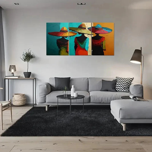 3pcs Women Hats Vibrant Teal Orange Yellow & Blue Metal Print Ready to Hang Art