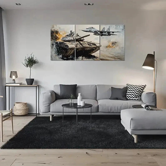 3pcs Warfare Trilogy Tank Fighter Jet Metal Print Ready to Hang Art