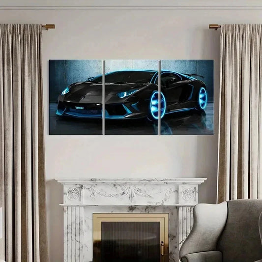 3pcs Black Lamborghini Supercar Sports Car Wall Art Set Canvas Framed 40x60cm - High Quality Print 100% Australian Made Wall Canvas Ready to Hang