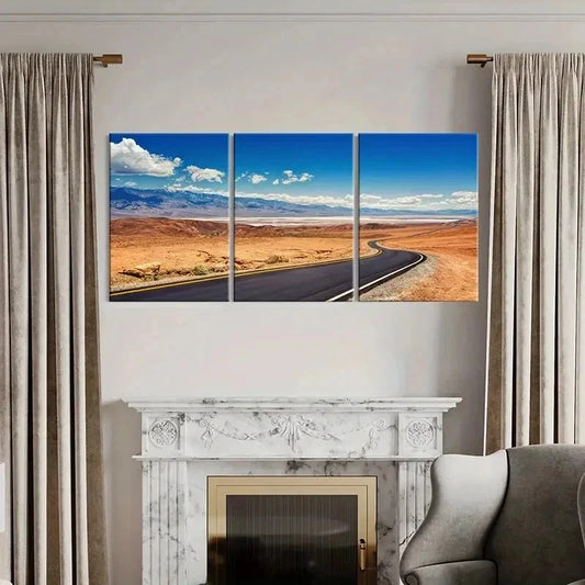 3pcs Highway Desert Road Modern Decor Wall Art Set Canvas Framed 40x60cm - High Quality Print 100% Australian Made Wall Canvas Ready to Hang