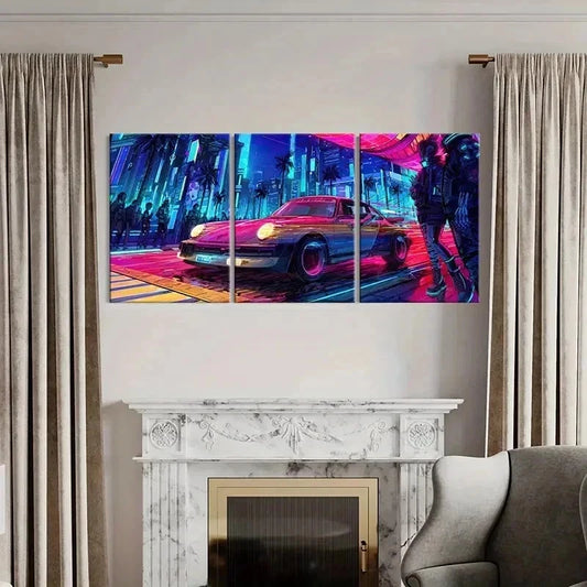 3pcs Vaporwave Aesthetic Sports Car Wall Art Set Canvas Framed 40x60cm - High Quality Print 100% Australian Made Wall Canvas Ready to Hang