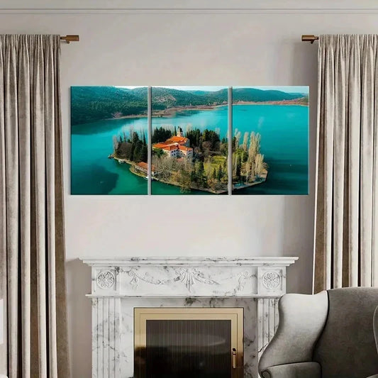 3pcs Lake House Island Modern Landscape Wall Art Set Canvas Framed 40x60cm - High Quality Print 100% Australian Made Wall Canvas Ready to Hang