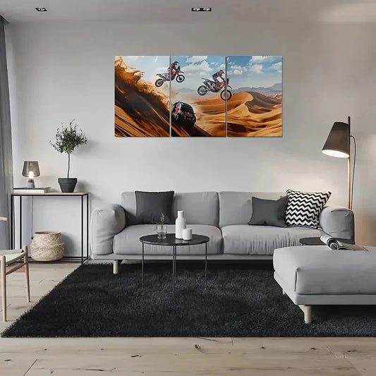 3pcs Desert Adventure Dirt Bike Racing Metal Print Ready to Hang Art