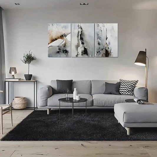 3pcs Minimalist Black Golden & White Metal Print Ready to Hang Art