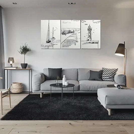 3pcs Seaside Sketches Lighthouse Sailboats Metal Print Ready to Hang Art