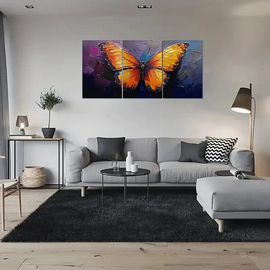 3pcs Vibrant Orange Black & Purple Butterfly Metal Print Ready to Hang Art