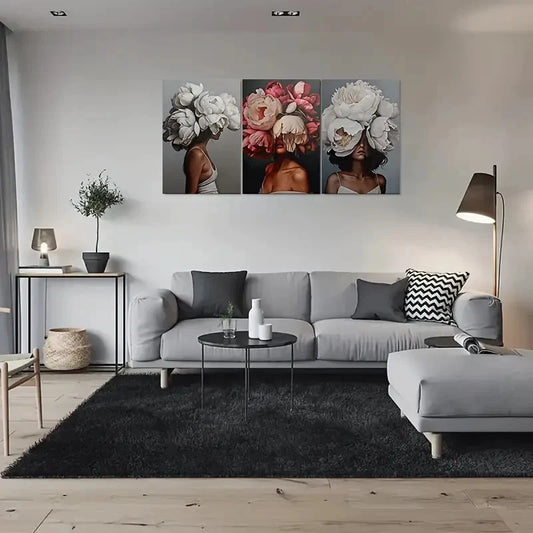 3pcs Abstract Floral Woman Portrait Metal Print Ready to Hang Art