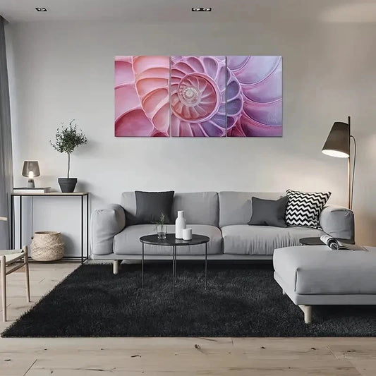 3pcs Abstract Pink Nautilus Shell Metal Print Ready to Hang Art