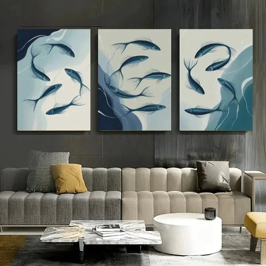 3pcs Koi Fish Watercolor Decorations Painting Metal Print Ready to Hang Art