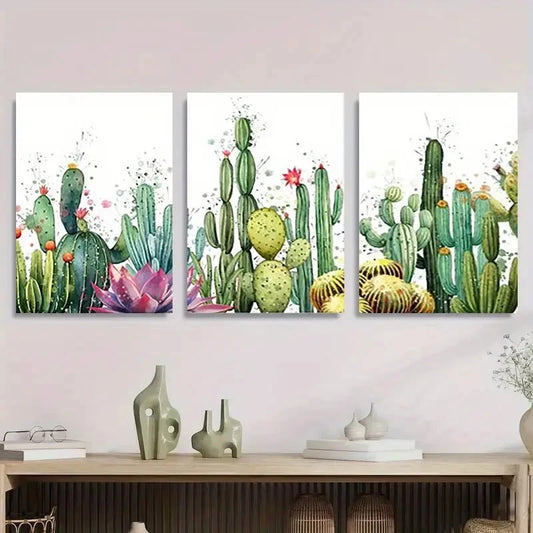 3pcs Vibrant Cactus & Tropical Succulent Metal Print Ready to Hang Art