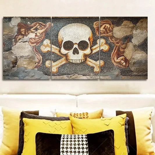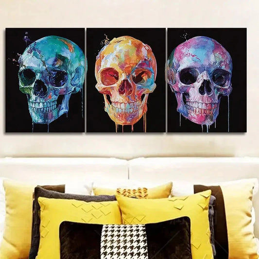 3pcs Modern Skull Paintings Contemporary Metal Print Ready to Hang Art