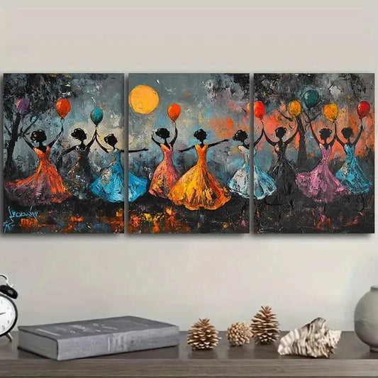 3pcs Vibrant Dancing Group Design Metal Print Ready to Hang Art