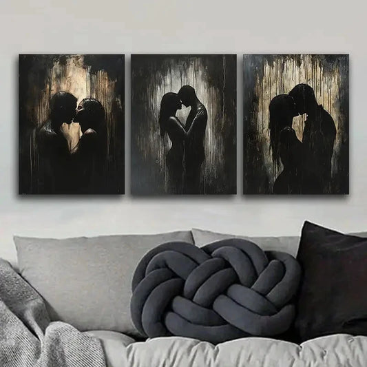 3pcs Classic Kissing Couple Painting Metal Print Ready to Hang Art