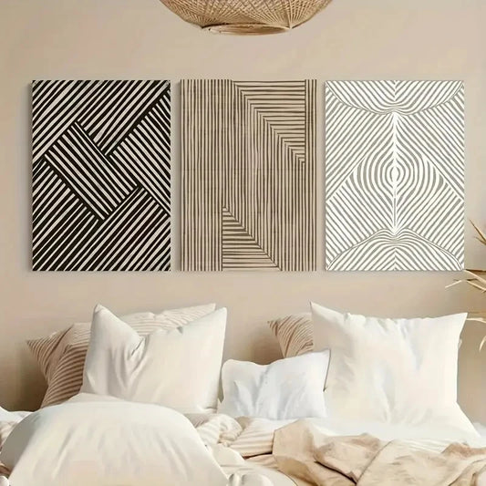 3pcs Abstract Beige & Brown Geometric Design Metal Print Ready to Hang Art