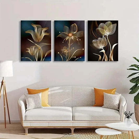3pcs Abstract Floral Geometric & Minimalist Design Metal Print Ready to Hang Art