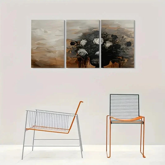 3pcs Modern Abstract Black & White Floral Wall Art Set Canvas Framed 60x90cm - High Quality Print 100% Australian Made Wall Canvas Ready to Hang