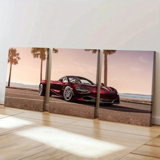 3pcs Red Colored Sports Racing Car Wall Art Set Canvas Framed 60x90cm - High Quality Print 100% Australian Made Wall Canvas Ready to Hang