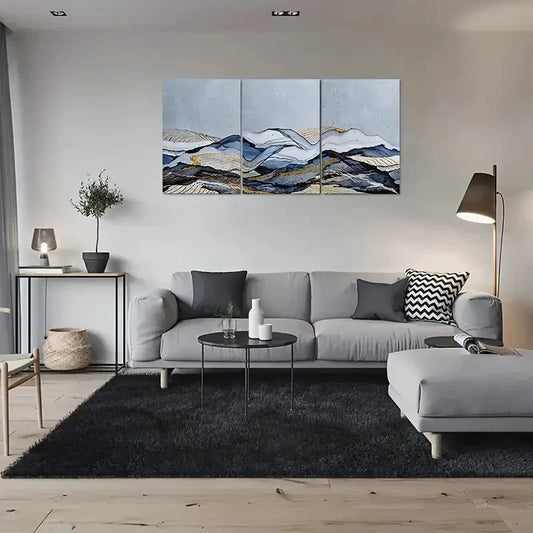 3pcs Blue and Golden Abstract Mountain Metal Print Ready to Hang Art