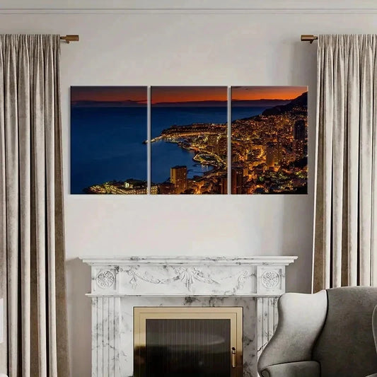 3pcs City Scenery Night Scene Coastline Wall Art Set Canvas Framed 40x60cm - High Quality Print 100% Australian Made Wall Canvas Ready to Hang