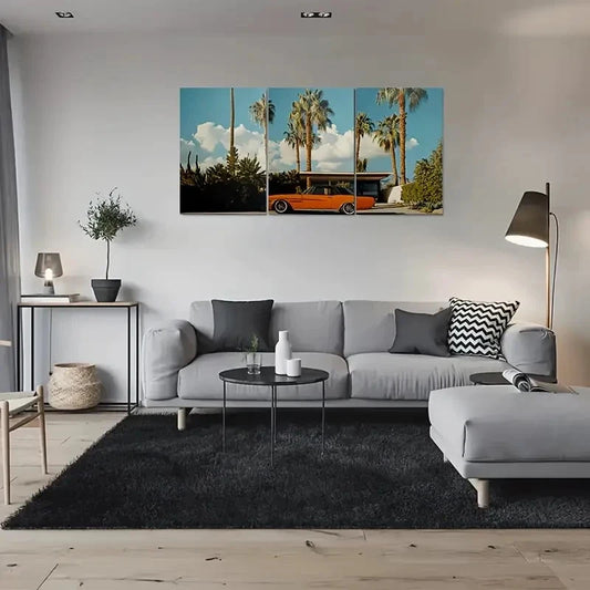 3pcs Vintage Car and Palm Trees Metal Print Ready to Hang Art