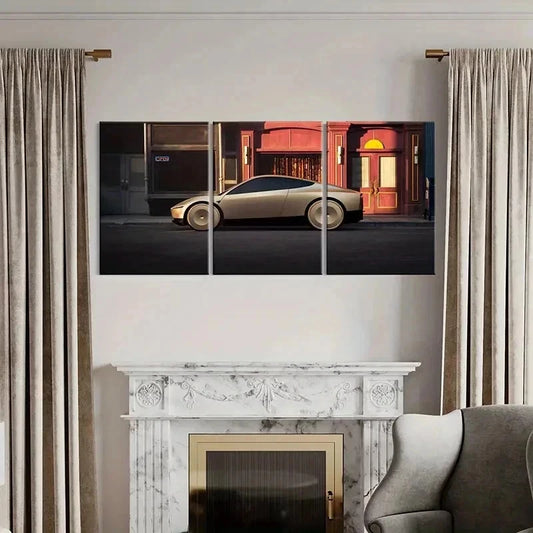 3pcs Modern Electric Sports Car Decor Wall Art Set Canvas Framed 40x60cm - High Quality Print 100% Australian Made Wall Canvas Ready to Hang