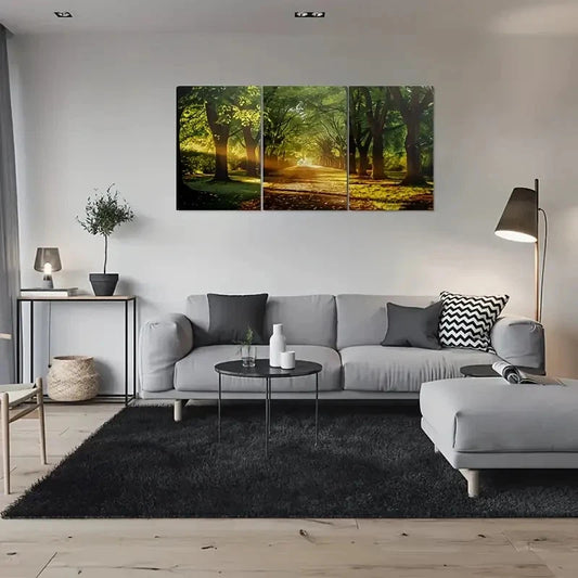 3pcs Nature Pathway Forest Trees Sunlight Metal Print Ready to Hang Art