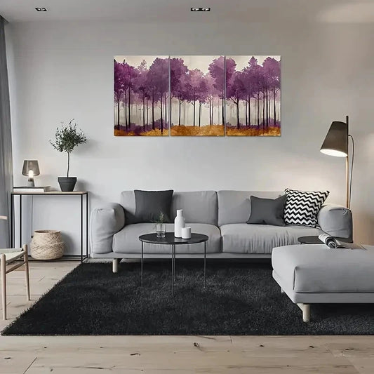 3pcs Abstract Purple Forest Deco Metal Print Ready to Hang Art