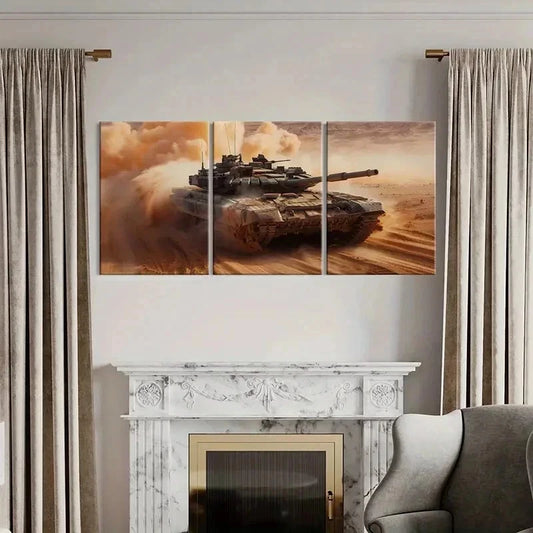 3pcs Military Theme Tank in the Desert Wall Art Set Canvas Framed 40x60cm - High Quality Print 100% Australian Made Wall Canvas Ready to Hang